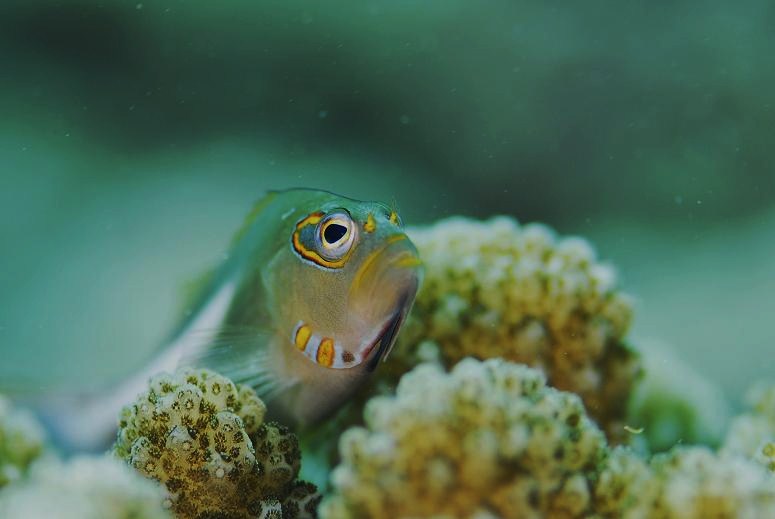 サンゴの穴から顔を出して きょろきょろしてます☆