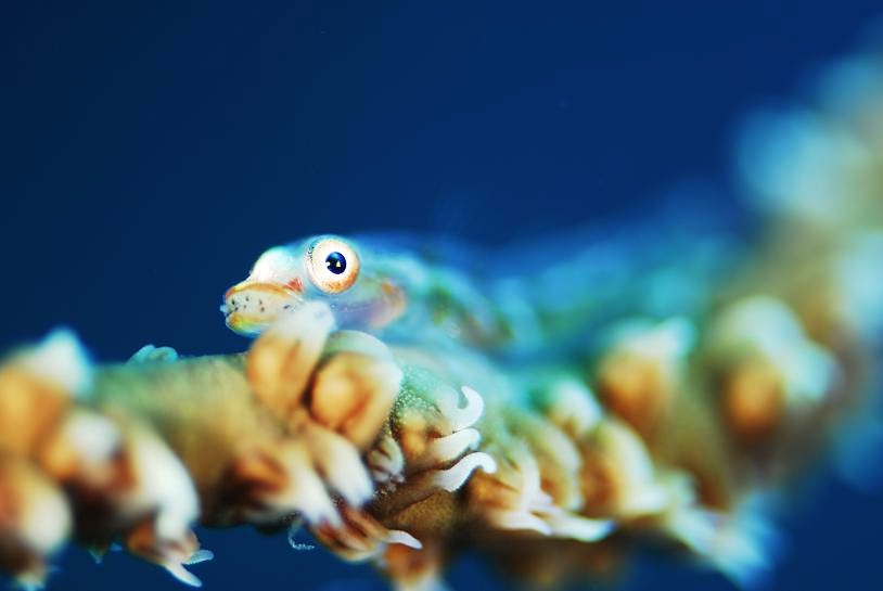 ムチカラマツについているガラスハゼ♪ 透き通っているからガラスはぜ☆  まんま・・・