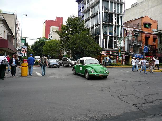 飛行機でメキシコシティへ  タクシーがビートルの為、町中ビートルだらけ!